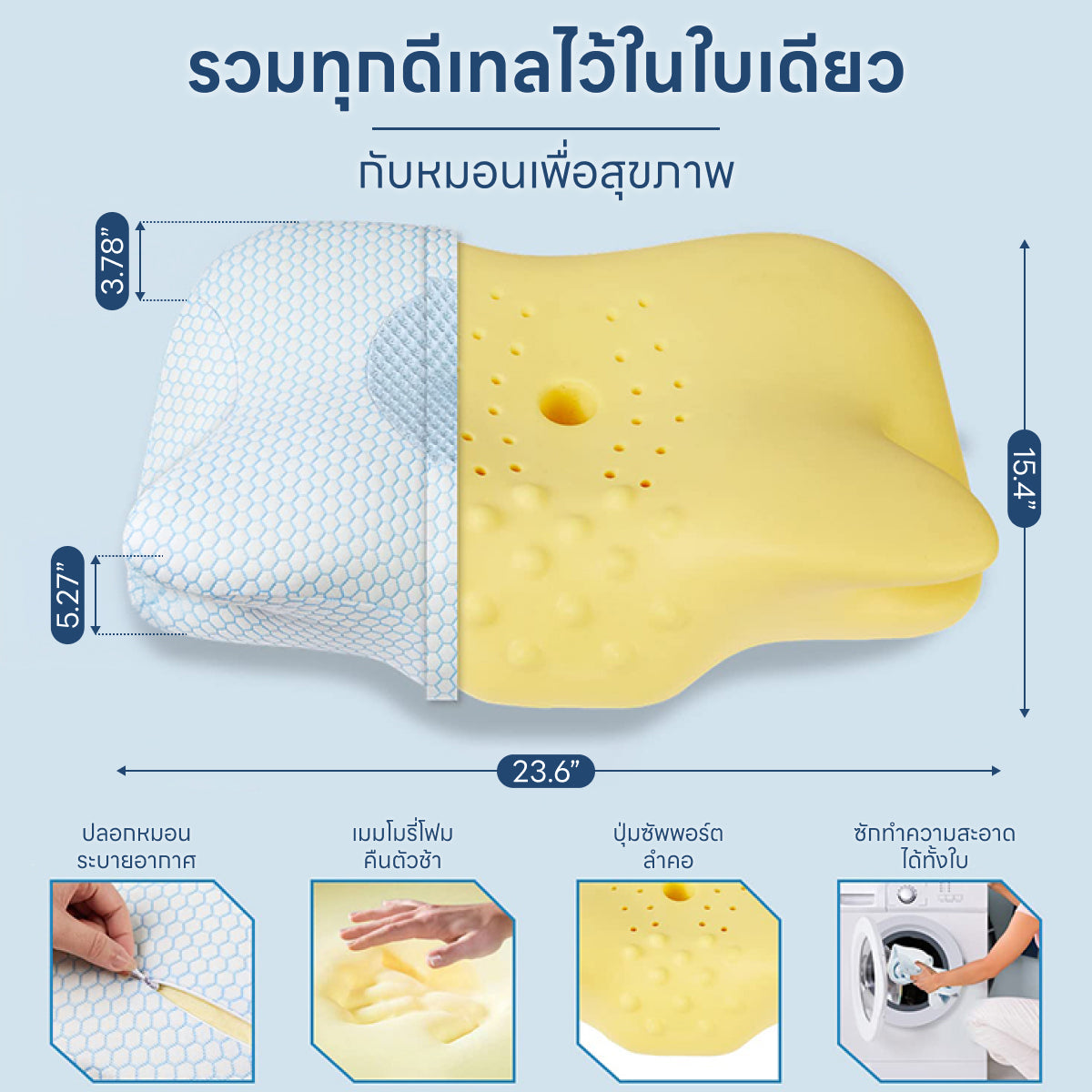 - หมอนหนุนเพื่อสุขภาพออกแบบมาให้รองรับทุกท่วงท่าการนอน