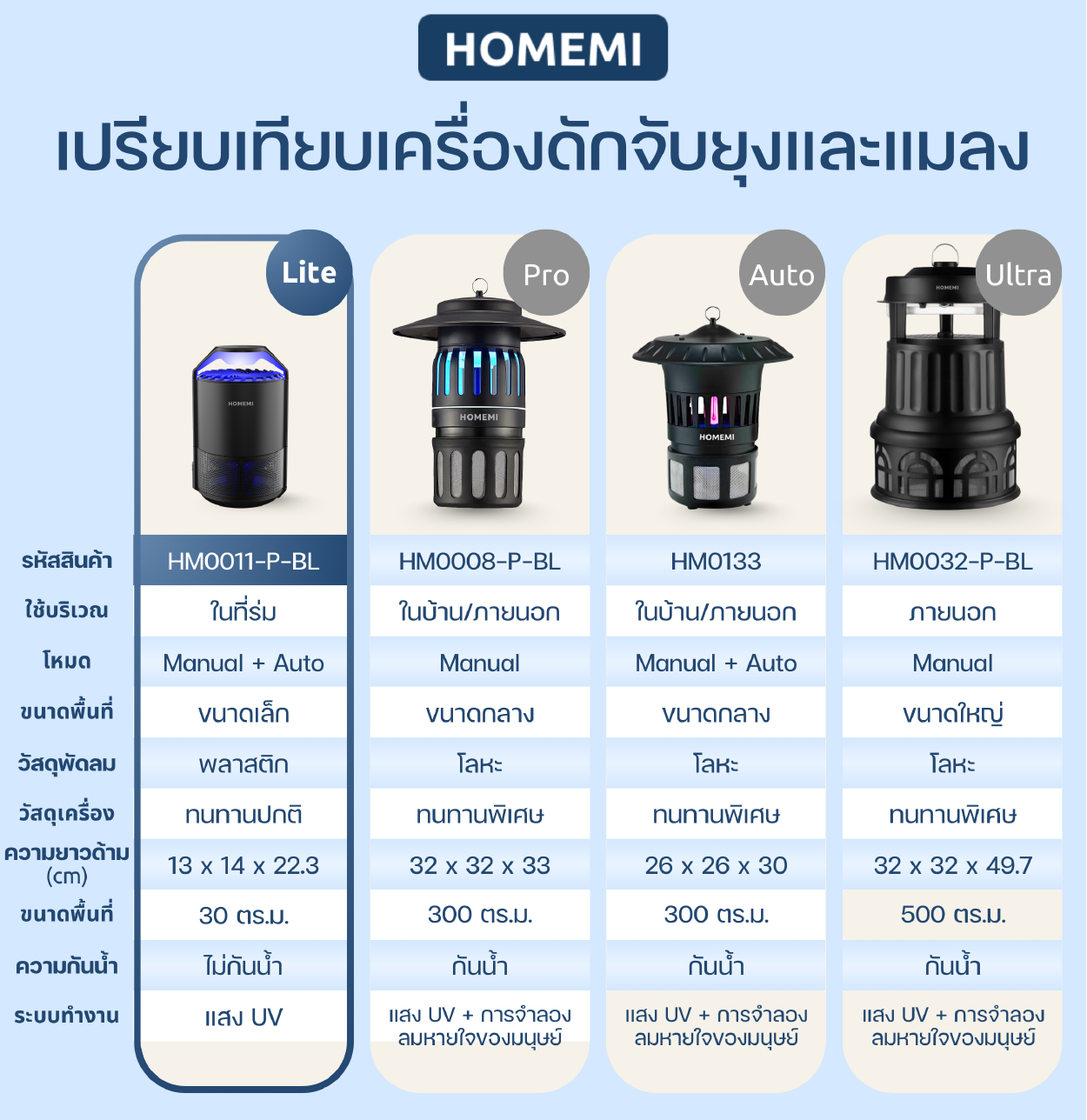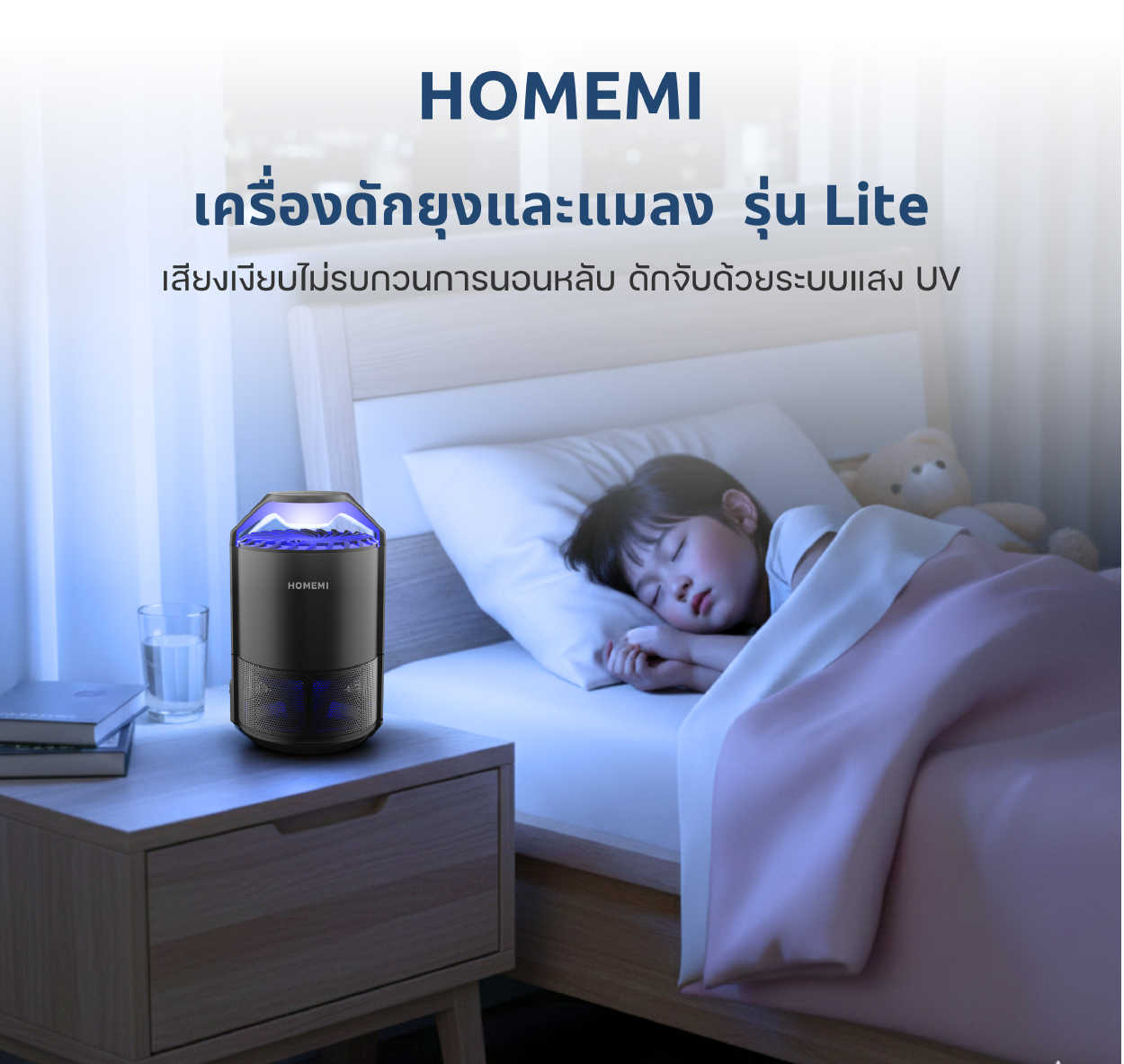 Homemi เครื่องดักยุงและแมลง รุ่น HM0011-P-BL เปิดปิดอัตโนมัติ ระบบแสง UV ด้วยคลื่นความถี่ 365 นาโนเมตร ไม่ใช้สารเคมี