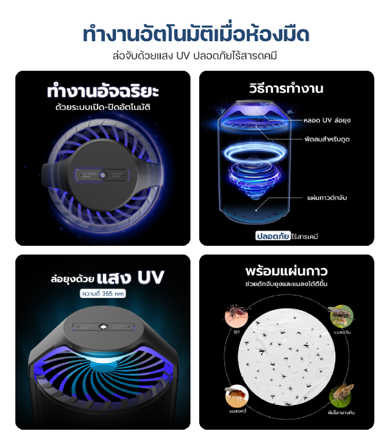 💡 ใช้การล่อยุงด้วยแสง UV ความถี่ 365 นาโนเมตร