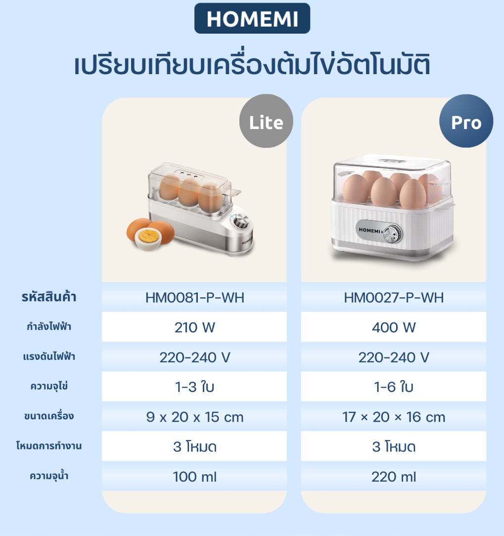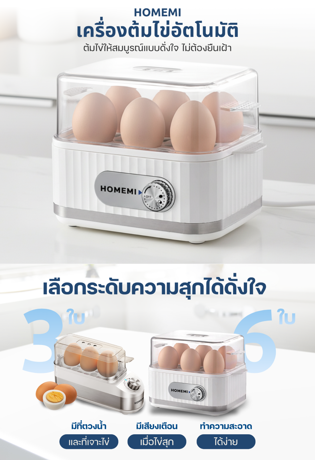 Homemi เครื่องต้มไข่อัตโนมัติ เลือกระดับความสุกของไข่ได้