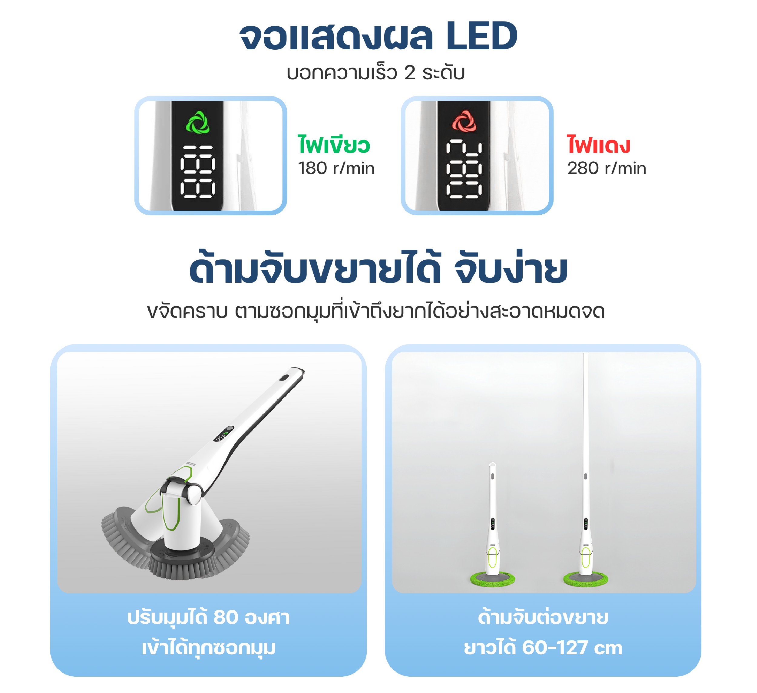 📏 ด้ามจับขยายได้: ยืดหดได้จาก 60-127 cm ทำให้ทำความสะอาดในที่ที่เข้าถึงยากได้ง่าย