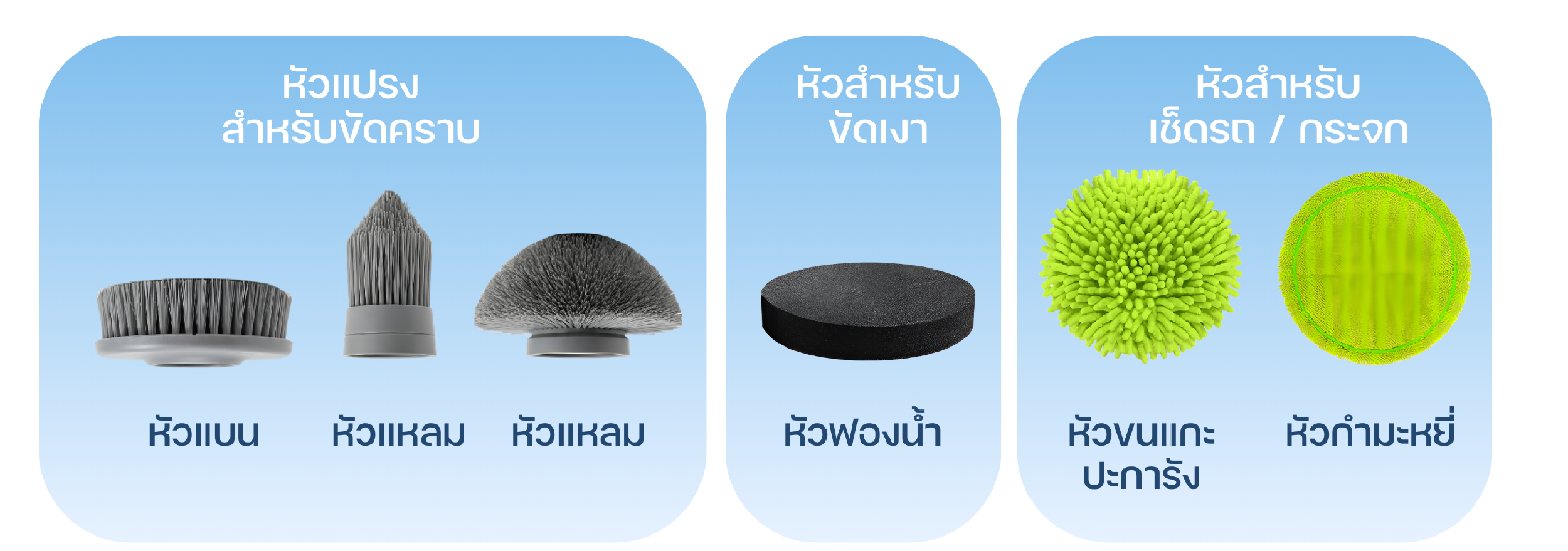🧹 หัวแปรง 6 แบบ สำหรับการใช้งานที่หลากหลาย: