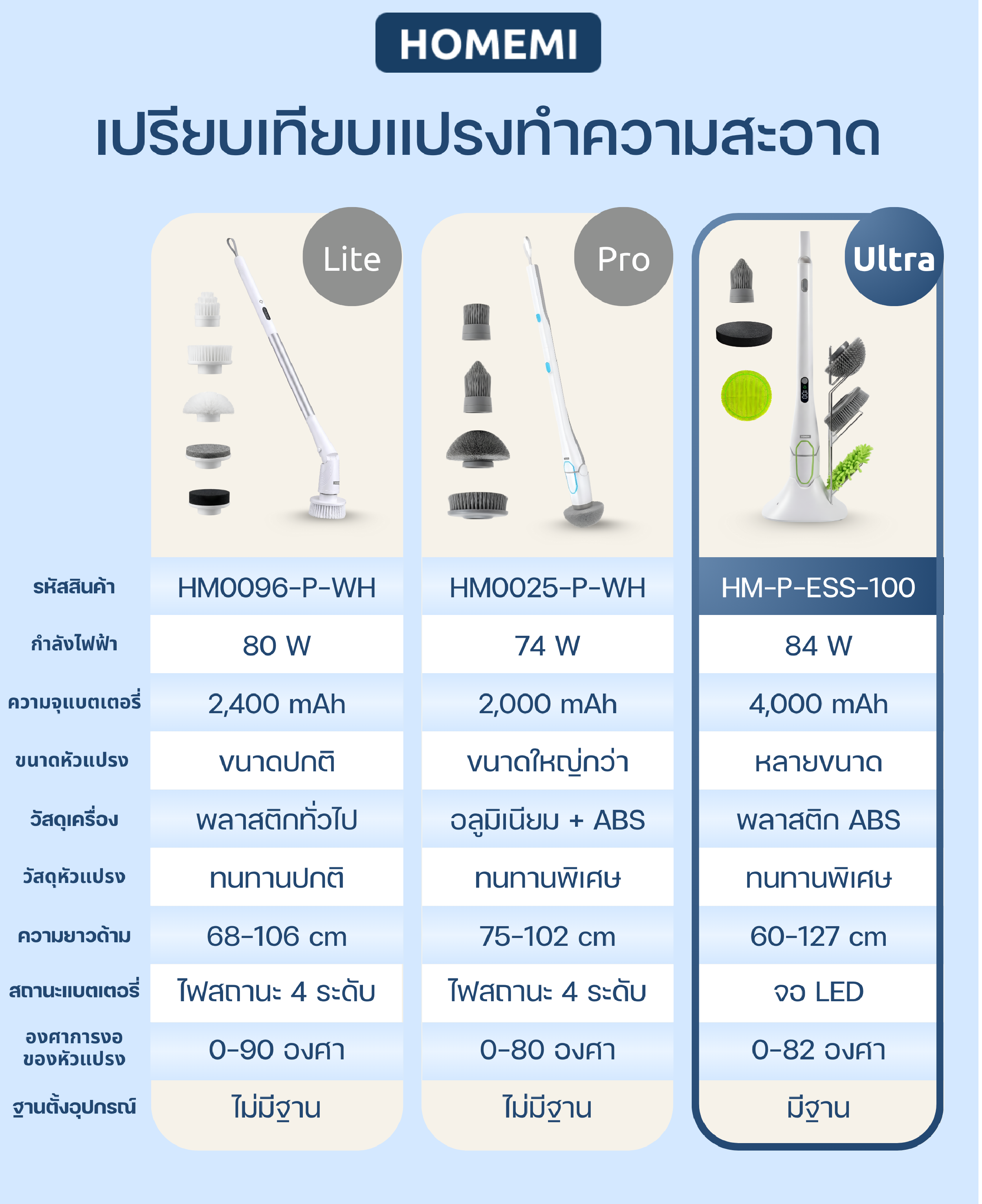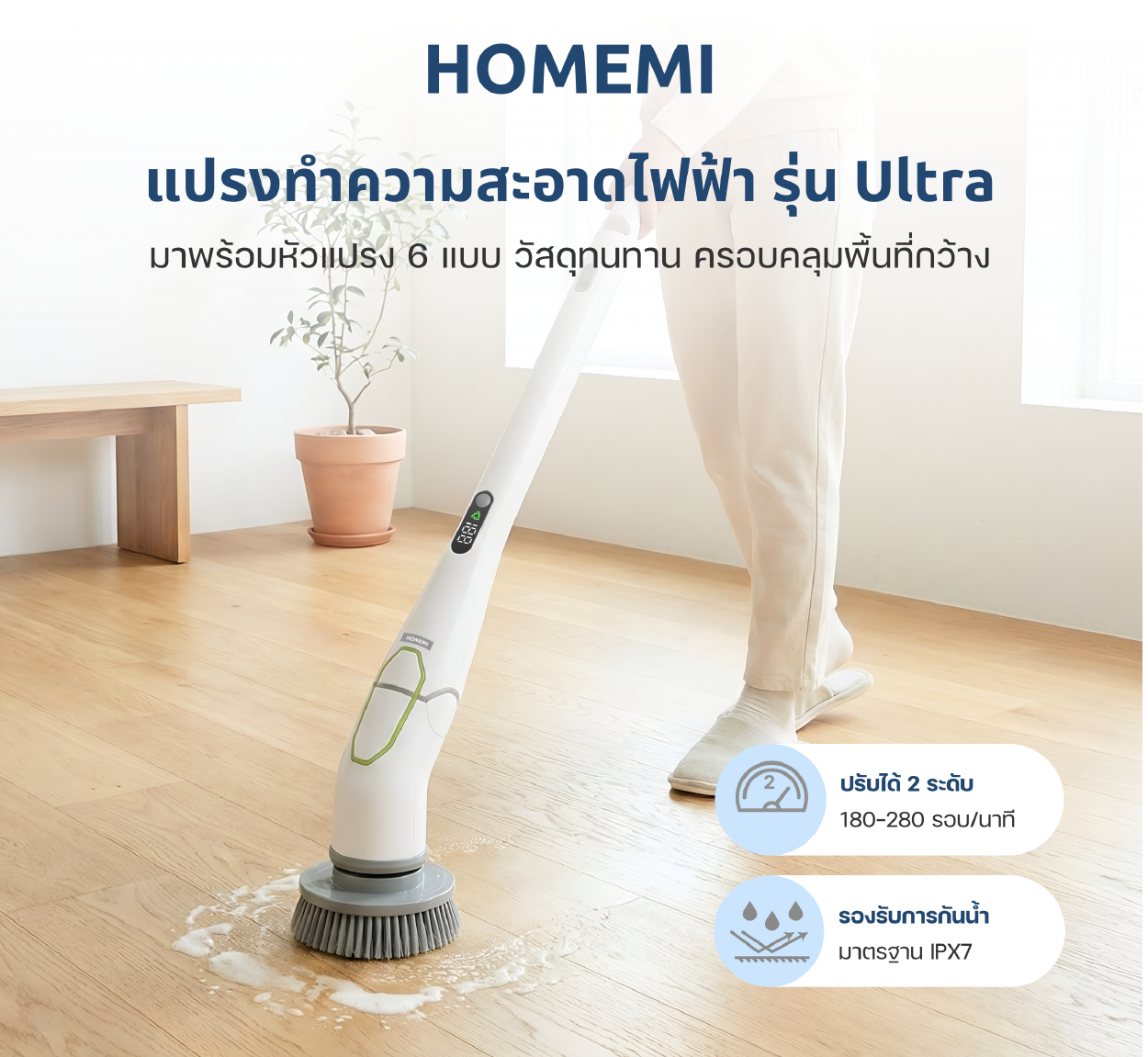 Homemi แปรงทำความสะอาดไฟฟ้า รุ่น HM-P-ESS-100 มอเตอร์ 84W แถมหัวเปลี่ยน 6 แบบ (ห้องน้ำ ขัดพื้น)