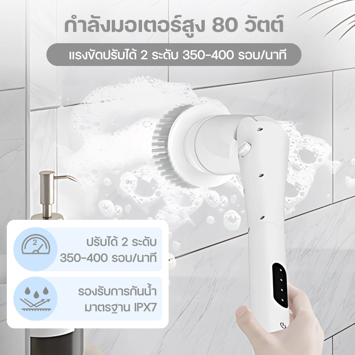 Homemi แปรงทำความสะอาดไฟฟ้า รุ่น Lite แถมหัวเปลี่ยน 5 แบบ ขัดห้องน้ำ ล้างรถ เช็ดกระจก (HM0096-P-WH)