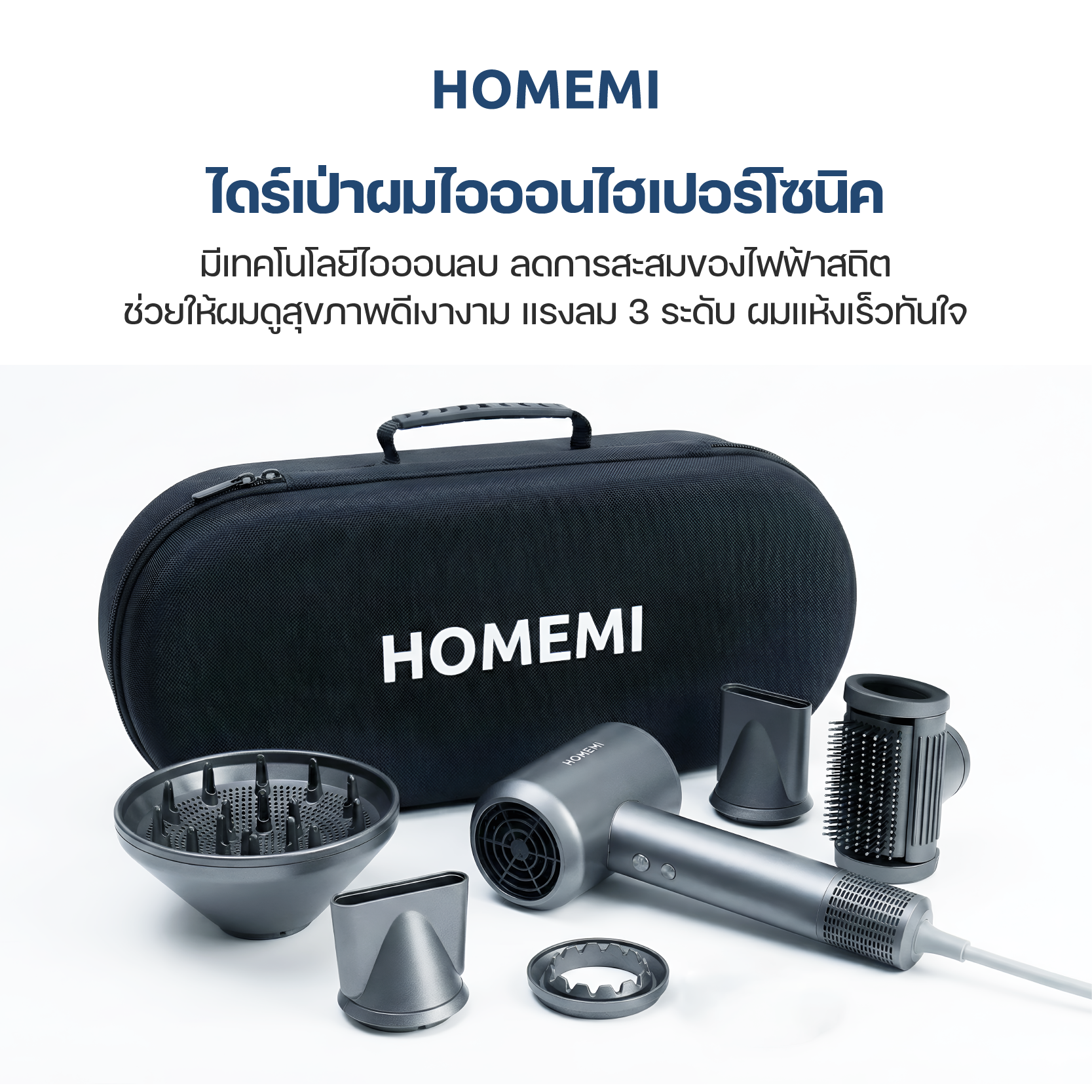 Homemi Hypersonic Ion Hair Dryer ไดร์เป่าผมไอออนไฮเปอร์โซนิค (HM0050)