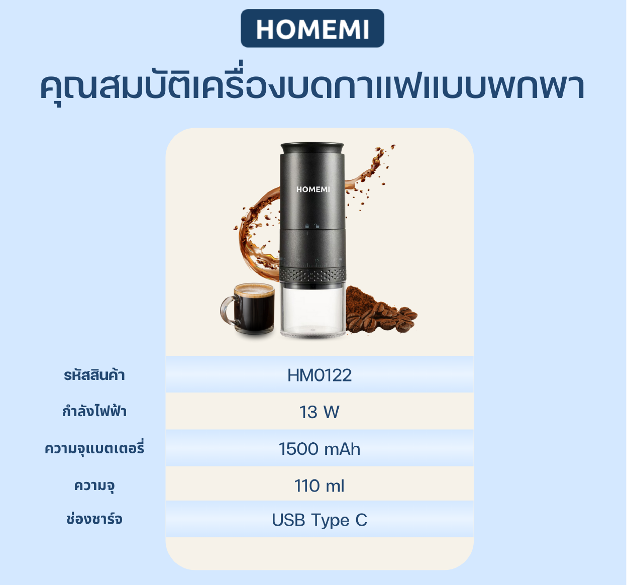 Homemi Portable Coffee Grinder เครื่องบดกาแฟแบบพกพา (HM0122)